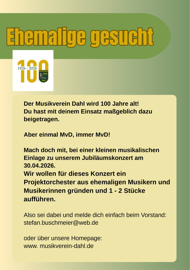 Herzlich Wilkommen auf der Homepage des Musikverein Dahl 1926 e.V.!