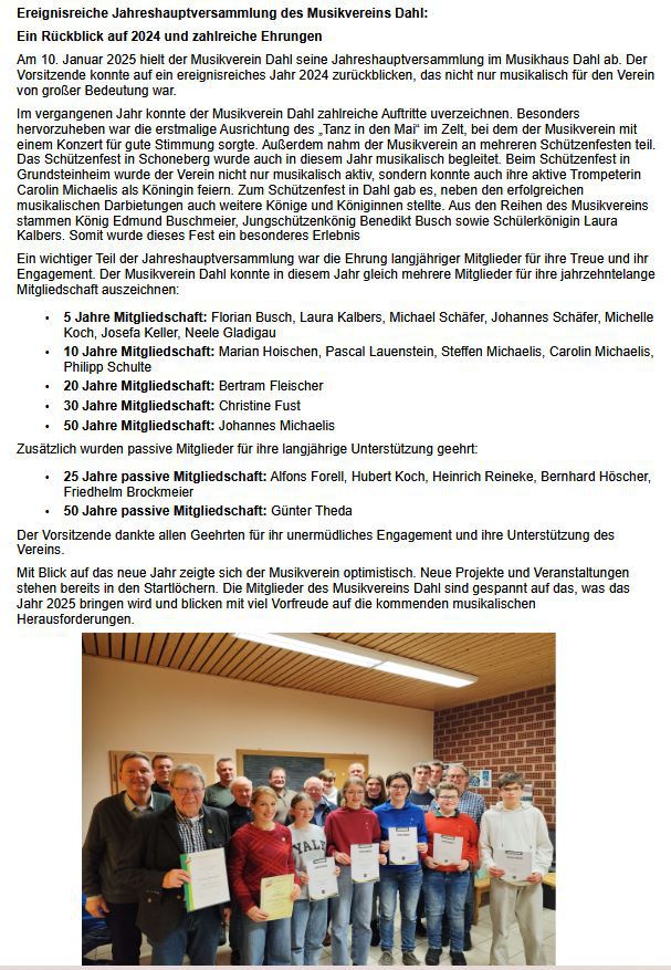 Musikverein Dahl - ein fester Bestandteil der dörflichen Gemeinschaft